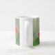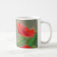 Eine weiße Tasse, die mit rote Rosen aus einer originellen pastellfarbenen Ölgemälde geschmückt ist.