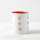 Weihnachtsbaumdekorationen mit Sternen in einem zentralen Band in senkrechten Reihen von drei, wird fünfmal um die Tasse wiederholt. Bei einzelnen Zeilen kann sich die Farbe ändern, indem Sie auf "Anpassen" klicken und den "o o o"-Text auswählen, um ihn zu ändern. Anschließend verwenden Sie den "Farbwähler" (schwarzes Quadrat in der Schriftart-Zeile). ***Teil des koordinierten Set - BKM2a.