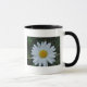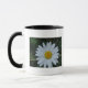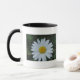 Eine grosse, weisse Margeritenblüte auf einem nen beigen Stäbchen, vor dem dunklem ist das Design dieser Tasse.