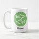 Pisces - Zeichen des Zodiaks - 20. Februar bis 20. März. Grafische Darstellung von zwei Fischen (weiß in einem hellgrünen Kreis). Text nach rechts gibt Farbe und Attribute dieses Zeichens an.