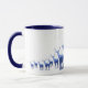 Diese Tasse wird außen in Weiß gezeigt, und hübsch blaues Hirsch/Elch wird auf der Unterseite der Tasse von rechts bis links in der Größe aufgedruckt, als ob sie in der Ferne weg laufen. Das Innere und der Griff sind marineblau. Passen Sie diese Tasse an oder kaufen Sie sie wie geplant. Archivbild mit freundlicher Genehmigung von www.freepik.com
