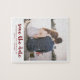 Das Knallrote "Save the Date" Pinselskript und ein Foto Hochzeit speichern das Datum Ankündigung Puzzle.