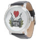 Uhr, Klassische Damenuhr mit schwarzen Lederarmband