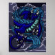 Ein blauer Drache auf einem stürmischen Hintergrund.