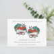 Diese Save the Date auf die Hochzeit abgestimmte Karte zeigt Tätowierungsgrafiken mit Retroherzen in Rot mit blauen Blume-Akzenten, die bereit sind, mit dem Namen der Braut und des Bräutigams personalisiert zu werden. Die tätowierte Grafik im Freehand-Stil hat ein Retro-Gefühl.