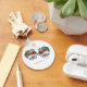 Mit diesem Schlüsselanhänger erstellen Sie ein individuelles Hochzeitsgeschenk oder ein Gastgeschenk. Es zeigt Tätowiergrafik mit Retro-Stil Herzen in rot mit blauen Blume Akzenten, die bereit sind, mit dem Namen der Braut und Bräutigam personalisiert zu werden.