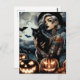 Tattooische Hexe mit schwarzer Katze und Vollmond Postkarte