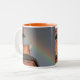 Taube auf dem Topf mit der Regenbogen-Tasse Zweifarbige Tasse