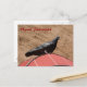 Postkarte mit einem Foto einer Taube in der Stadt. Der Text Hyvää Pääsiäistä in roten Buchstaben. Frohe Ostern im Finish. Personalisierbar.