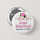 Zwei weiße Tauben, rosa Rose und trailing Band mit Herzen. In rosa Text steht "Just Married". Passen Sie den Hochzeitstag für eine einzigartige Geschenkidee an.