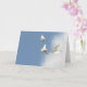 Drei weiße Tauben fliegen in eine Cloud-Karte. Gut für Geburtsankündigungen oder Geschenke, Hochzeiten, Braut. Symbolisch für Liebe, Frieden, Reinheit. ZIMMER FÜR DIE NACHRICHT ODER DEN TEXT