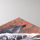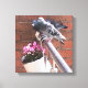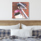 Diese wunderschöne gewickelte Leinwand zeigt ein Foto, das auf meinem Balkon von einem Taubenpaar aufgenommen wurde, das auf der Balkonschiene über einem bunten Hängetopf aus rotem Saxibrech sitzt.