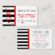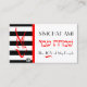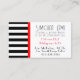 Diese Visitenkarte ist mit der roten Kontur einer Taube über fett-schwarz-weiß Streifen versehen. Gegenüber ist eine koordinierte Seite. ~ Karyn
