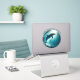 Ein Delphin unter Wasser mit Sonnenstrahlen, die durch das Wasser strömen. Über dem Bild stehen die Worte "Dive deep, live free". Ein wunderbarer Aufkleber mit einer inspirierend Nachricht. Enthält generativen Inhalt.