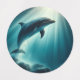 Ein Delphin unter Wasser mit Sonnenstrahlen, die durch das Wasser strömen. Über dem Bild stehen die Worte "Dive deep, live free". Ein wunderbarer Aufkleber mit einer inspirierend Nachricht. Enthält generativen Inhalt.