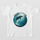 Ein Delphin unter Wasser mit Sonnenstrahlen, die durch das Wasser strömen. Über dem Bild stehen die Worte "Dive deep, live free". Ein wunderbarer T - Shirt mit einer inspirierend Botschaft. Enthält generativen Inhalt.