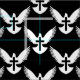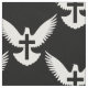 Taube Silhouette mit offenen Flügeln und einem Kreuz. Nahtloses Muster. Benutzerdefinierte Hintergrundfarbe.