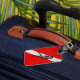 S.C.U.B.A Flag, oder Taucherabtrieb, ist eine rot-weiße Signalflagge, die auf einem Boot geflogen wird, um anzuzeigen, dass sich Taucher im Wasser befinden und andere Boote sich frei bleibe haben. Hier gibt es einen Taucher, der in vollen Zügen taucht.