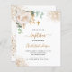 Weiße, mit Eukalyptusgrün dekorierte Untertöne, eine weiße Rose, goldene Blätter und Imitate, vergoldeter Glitzer. Personalisieren und die Kinder Name und Zeremonie Details. Schwarze und goldfarbene Buchstaben. Geschlechterneutral. Zurück: weißer Hintergrund mit goldenen Imitaten Glitzer fällt ab