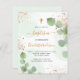 Weiß und hellgrün mit Eukalyptusgrün und Imitaten mit goldenem Glitzer Staub. Personalisieren und die Kinder Name und Zeremonie Details. Schwarze und goldfarbene Buchstaben. Geschlechterneutral. Zurück: hellgrüner Hintergrund,