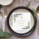Für eine elegante Taufe, geschlechtsneutral. Ein schick weißer Hintergrund. Dekoriert mit grünen Aquarellen Eukalyptusbäumen, Blätter, Grünpflanzen, Imitaten goldenen Blätter. Personalisieren und fügen Sie den Namen des Kindes und ein Datum ein. Schwarze und goldene Buchstaben.