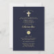 Diese marineblaue und goldene religiöse Einladung kann für jede Feier verwendet werden, einfach den Text wie gewünscht editieren. Auf der Rückseite ist Platz für weitere Details. Die Hintergrundfarbe und die Farbe des Schriftartes können geändert werden.
