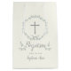 Blauer und grüner Blatt-Kranz dieses Frühjahrs erhellt Ihre Feier. Dieser Entwurf ist auf einem Hintergrund der hellen Creme, geschmückt mit einem schönen grauen Kreuz. Vervollkommnen Sie für die Taufe oder die erste heilige Kommunion Ihr Kindes. Karo heraus die zusammenpassenden Zusätze, die Geschenke, die Gastgeschenke und das Briefpapier.