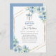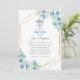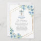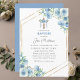 Feiern Sie Ihren besonderen Tag mit dieser wunderschönen Taufveranstaltung mit einem eleganten, gedrapierten, geometrischen und kreativen Goldrahmen und mit sanften blauen Akzenten geschmückten Rahmen. Dieses Design ist perfekt für die Taufe von Jungen geeignet und verbindet traditionelle religiöse Elemente mit einem modernen, frischen Look. Die zarten blauen Blumen und die minimalistischen Details schaffen eine zeitlose Einladung, die den Ton für einen sinnvollen und fröhlichen Anlass Set. Personalisieren Sie mit allen Einzelheiten der Veranstaltung, um Freunde und Familie zu laden, an diesem heiligen Meilenstein teilzunehmen.