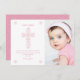 Diese moderne Taufe, oder Christening, Dankeschön-Karte verfügt über ein elegantes illustriertes Rosa- und Weiß-Blumenkreuz sowie über ein Foto. Eine schnelle und einfache Möglichkeit, den Gästen für die Teilnahme an der religiösen Feier eines Mädchens zu danken, kann es mit dem Namen Ihres Kindes und einer persönlichen Note angepasst werden. Die Hintergrundfarbe kann auch nach Ihren Wünschen geändert werden.