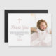 Vielen Dank für Ihre Familie und Ihre Freunde, dass Sie mit einem Foto Ihres Kindes an der Taufe Ihres Mädchens teilnehmen. Das rosa Design weist weiße Polka-Punkte auf einem rosa Aquarellhintergrund auf der Rückseite der Karte auf. Der gesamte Text kann angepasst werden, einschließlich des Namens Ihres Kindes und der Nachricht.