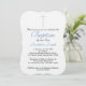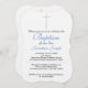 Elegante Taufe Cross Baby Boy Son Einladungen mit einfachem handgemalten silbernen Kreuz mit goldenen Akzenten auf der Vorder- und Rückseite der Karte. Frisch und scharf aussehen. Taufe und Kindername sind in hübschem, blauen Schriftsatz geschrieben. Personalisieren Sie mit dem Vor- oder Vornamen Ihres Babys, dem Datum der Taufe und den Details. Die Rückseite der Karte ist weiß mit dem Wortlaut Kind Gottes in Silbertext. Wählen Sie Stil und Papiertyp aus. . Original Artwork and Design © TamiraZDesign.