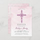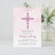 Diese hübsche und trendige Taufe oder Taufeinladung besticht durch einen rosa Aquarellhintergrund mit einem illustrierten lila Kreuz und dem in einem stilvollen Schriftart geschriebenen Wort "Taufe". Der Hintergrund kann entfernt und an eine Farbe Ihrer Wahl angepasst werden. Der Text kann auch für den besonderen religiösen Anlass Ihrer Tochter personalisiert sein.