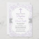 Taufe der Mädchen Lila und Graue Damask Einladung
