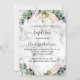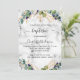 Marmorstein als Hintergrund mit Eukalyptusgrün und goldenen Blätter. Personalisieren und den Namen und die Zeremonie Details des Kindes. Zurück: marmorierter Hintergrund.