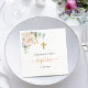 Für eine elegante Taufe, geschlechtsneutral. Ein schick weißer Hintergrund. Die Einrichtung besteht aus weißen, wasserfarbenen Blätter mit Eukalyptus-Rosen und grünen Eukalyptusbäumen, Grünpflanzen, vergoldeten Imitaten und Blätter. Ein Imitat vergoldet. Personalisieren und fügen Sie den Namen des Kindes und ein Datum ein. Schwarze und goldene Buchstaben.