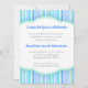 Blau und Aqua Perlen und Streifen gemusterten Jungen Taufe Einladung. Personalisieren Sie Ihre Daten und ein spezielles Foto Ihres Sohnes.