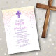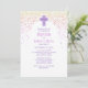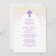 Ein modernes, zeitgenössisches Taufdesign für ihren großen Tag! Die rosa und lila Konfetti und die einfache Typografie verleihen diesem Design ein klassisches, lustiges Ambiente.