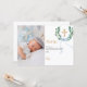Eine moderne und elegante Taufe danke Ihnen Karte. Ein schick weißer Hintergrund mit einem Aquarellkranz, einem blauen Bogen und einem goldenen Kreuz. Personalisieren Sie und fügen Sie Ihr Foto des Kindes, danke Ihnen Notiz und Name.