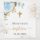Taufe hellblauer Blütenjunge Name Goldkreuz Weinetikett