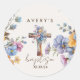Taufe moderne blaue Aquarell kreuzen elegant Runder Aufkleber