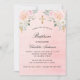Eine moderne, elegante Taufe, die ein kleines Mädchen feiert. Rosa, rot, mit kleinen goldenen Glitzern, Punkten und einem goldenen Kreuz geschmückt. Rosa, weiße Blumen und Eukalyptusgrün. Personalisieren und fügen Sie einen Namen und Party-Details hinzu. Schwarze Buchstaben. Elegantes Skript