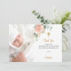 Eine moderne und elegante Taufe danke Ihnen Karte. Ein schick weißer Hintergrund mit einem Aquarell in Rosa, Rose Gold, Eukalyptusgrün und Imitaten goldenen Blätter. Personalisieren Sie und fügen Sie Ihr Foto des Kindes, danke Ihnen Notiz und Name.