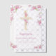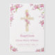 Holzkreuz mit rosa orchid Aquarell Blume Taufe Vellum Overlay Einladung. Fügen Sie Ihre eigenen Daten und Veranstaltungsdetails hinzu. Hübsche orchid Blumendesign Idee für tropische Location Taufe. Ideal als Overlay mit eigenem Foto, auch die Hintergrundekarten sind separat erhältlich. © Original handgemalte Aquarellorchideen Holzkreuz und Design von Sarah Trett nur für www.mylittleeden.com