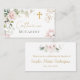 Elegante Taufe/Weihnachtswoche Platzkarte mit einer Darstellung der herrlichen rosa Rose, des grünen Blattwerks und der blumenvergoldeten Blätter im Aquarellstil. Oben auf der Karte befindet sich ein Bild von Cross. Aufgrund dieser Art von Karte ist es nicht möglich, Einzelnamen zu tun. In diesem Design können Sie den Beispielnamen (leere Karte) entfernen. Dann müsste man die einzelnen Namen von Hand schreiben.