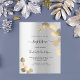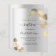 Eine moderne, elegante Taufeinladung, geschlechtsneutral. Imitate silbermetallischer Hintergrund mit goldfarbenem Eukalyptus, Sprigs. Personalisieren und fügen Sie einen Namen und Details. Schwarze Buchstaben.