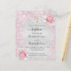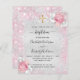 Eine moderne, elegante Taufe, bei der zwei Mädchen, Zwillinge, gefeiert werden. Imitate silberfarbene, metallische Untergrundausstattung mit rosa Imitaten Glitzer Glitzern, goldenes Kreuz und Blumen, Blume. Personalisieren und fügen Sie Namen und Zeremoniedetails hinzu. Schwarze Buchstaben.