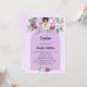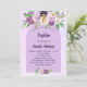 Ein violetter, lavendigerer, wasserfarbener Hintergrund. Mit violetten und lila Blume im Wasser und einem goldenen Kreuz dekoriert. Personalisieren und den Namen und die Empfang Details.