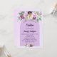Ein violetter, lavendigerer, wasserfarbener Hintergrund. Mit violetten und lila Blume im Wasser und einem goldenen Kreuz dekoriert. Personalisieren und den Namen und die Empfang Details.