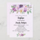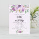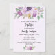 Ein violetter, lavendigerer, wasserfarbener Hintergrund. Die Einrichtung ist mit violetten und lila Blume und Grünpflanzen sowie einem goldenen Kreuz gestaltet. Personalisieren und fügen Sie einen Namen und Empfang Details hinzu.