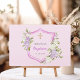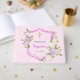 Ein sanft rosa Hintergrund. Rosa Wappen, rosa und lila Blumen, Blumen. Mit einem goldenen Kreuz. Personalisieren und fügen Sie einen Namen und ein Datum hinzu. Spine: Fügen Sie Ihren Text hinzu.